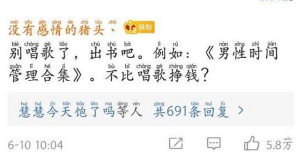 不过罗志祥的如意算盘可能打错了,他高估了大众对于艺人品行的容忍度,自以为靠着以前的成绩就能让人忽略他的品德败坏。在罗志祥想要复出的热搜下,评论区是一边倒的反对。大多数人的看法都是,他做过的那些事完全不值得原谅。热评的几位,更是字字珠玑,有人劝他去出书,比如《男性时间管理合计》,都比唱歌更来钱。