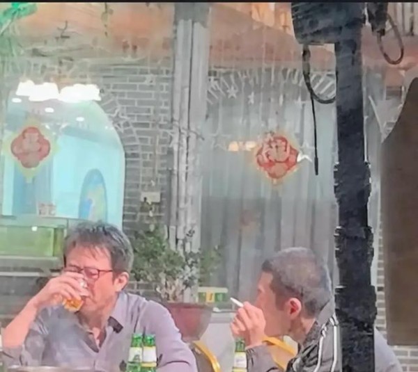 照片中,邓超身着一套休闲装,与平常在楼下撸串的大哥无异。他与王骁并肩而坐,几瓶啤酒摆在桌上,两人谈笑风生,神情专注而愉悦。