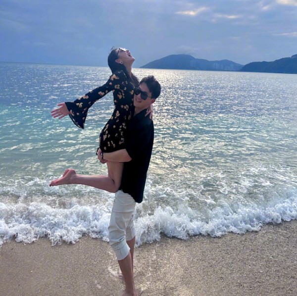 两个人互动很自然,拍照全靠老公掌镜,网友都说“何教官摄影技术肉眼可见进步”。