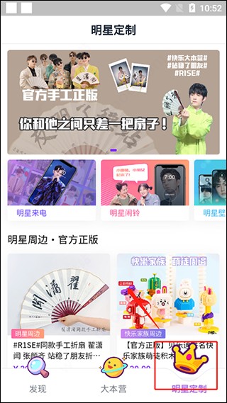 7、另外在“明星定制”中不仅提供了快乐大本营的周边货,还有各个明星的周边货哦,十分丰富。