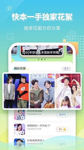 快乐大本营app是专门为湖南台的快乐大本营这综艺性娱乐节目而推出的一款手机相关资讯信息app,在这里用户不仅可以在线查看到节目更多的独家未播花絮、精彩花絮、精彩片段等视频,还能浏览到各个上过该节目的爱豆明星的专属壁纸、周边货、起床闹铃、手机来电等内容,十分丰富,因此如果你想要了解到更多关于快本这个节目以及你爱豆的信息,那么快乐大本营软件是必不可缺。而且,在该软件中用户们还可以与其他网友们一起参与活动、分享动态、参与话题讨论、聊明星八卦等,从而更好的认识志同道合的小伙伴,然后一起发现发现更多有关《快乐大本营》节目的动态。