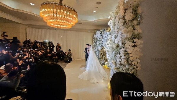 ▲邱泽、许玮甯婚礼现场,犹如三金场面。 (图/记者萧采薇摄)