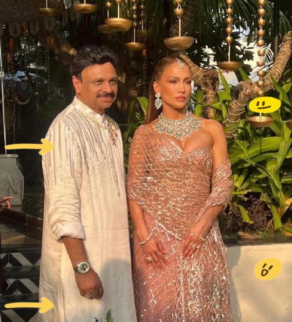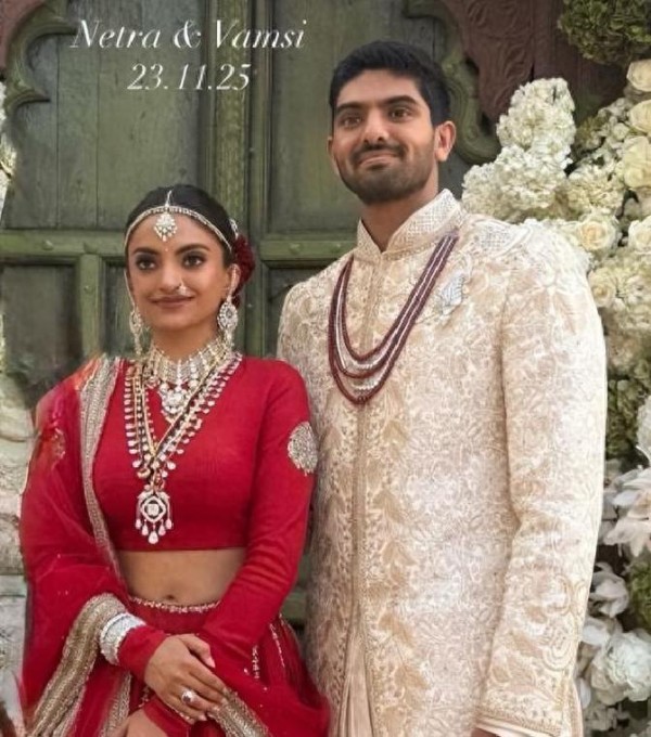 在主角方面,新郎内特拉·曼特纳与新娘瓦姆西·加迪拉朱年龄相仿,两人均不在印度常住,而是定居在美国。新郎在加州成长,并在哥伦比亚大学接受教育,目前创办了一家科技公司,专注于餐厅外卖配送服务,并成功入选“2024年福布斯30岁以下精英榜(餐饮行业)”。新娘的家族背景同样显赫,其父亲拉玛·拉朱·曼特纳是英格纳斯制药公司的首席执行官,业务遍布全球多个国家。在婚礼现场,他身着绣有孔雀的传统长袍,与詹妮弗·罗佩兹同框,这一画面充满了反差感。