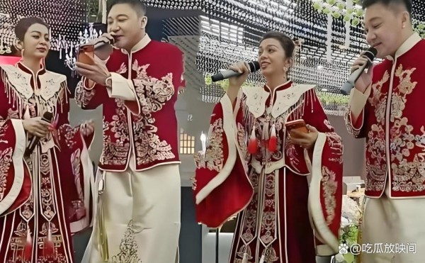 到场的宾客数量很少,大厅里的酒席桌数有限,座位稀稀落落。更引人关注的是现场氛围,尽管新郎新娘在台上深情对唱,但许多宾客似乎并未投入关注,而是低头吃饭、交谈或刷手机,使得整个场面看起来有些冷清,甚至被网友调侃像是一场“商演”活动,但观众反应却不给力。
