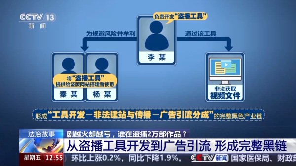 警方侦查发现,一个隐藏在网络深处的犯罪团伙分工明确:李某负责开发“盗播工具”,通过该工具非法获取视频文件;为规避风险并牟利,他将“盗播工具”提供给盗版网站搭建者秦某、杨某使用。由此形成了一条“工具开发—非法建站与传播—广告引流分成”的完整黑色产业链。