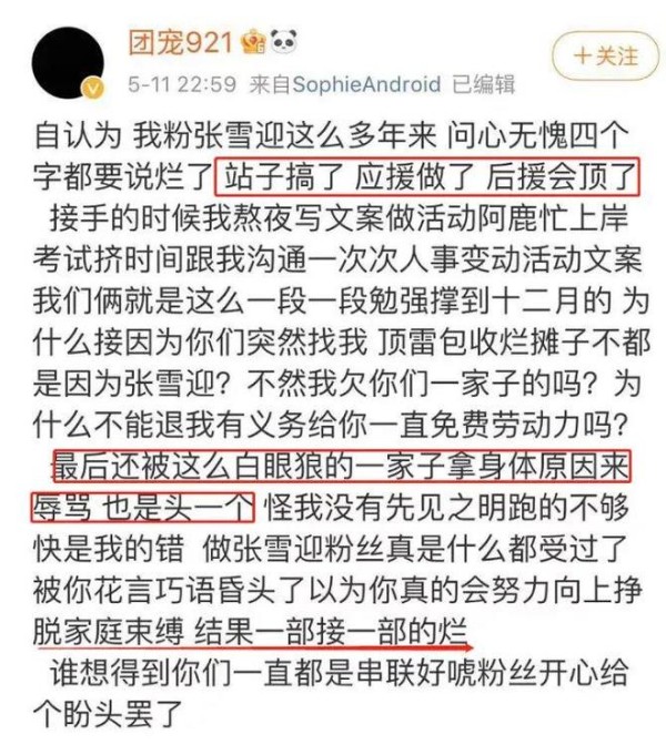 但她的姐姐兼经纪人张雪咪,曾在粉丝群里怼提意见的老粉。