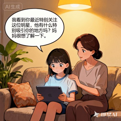 ✅ 尝试说:“我看到你最近特别关注这位明星,他有什么特别吸引你的地方吗?妈妈/爸爸很想了解一下。”