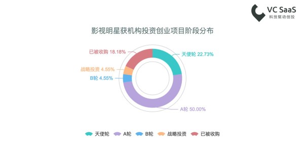 由以上数据我们可以看出,大部分的影视明星在创业过程中都尚处摸索阶段。在商业模式和扩张发展上都还没有绝对的成熟,超过70%的获投资项目都处于A轮及以前。但获投的企业当中有18.18%的项目是被直接收购的,这也说明这些影视明星们创业的退出效率也比较高。