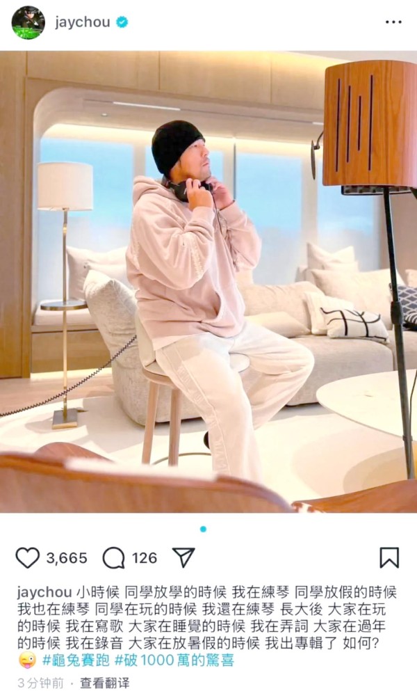 2月8日,周杰伦在社交平台上庆祝粉丝数量突破1000万,同时突然预告了新专辑的动向。他透露,新专辑目前正在紧张制作中,预计将在今年暑假期间与大家见面。这一消息引发了众多粉丝的期待和关注。