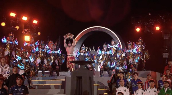 由Swargaloka Dance Crew带来的震撼开场《Rise in Indonesia》,集结60位舞者,以传统服饰与现代编舞呈现印尼多元文化:色彩、节奏与力量交织,印尼的文化多样性在同一个舞台上“合而为一”。演出中还融入了印尼神话元素,让传统信仰与电竞舞台产生奇妙共振。