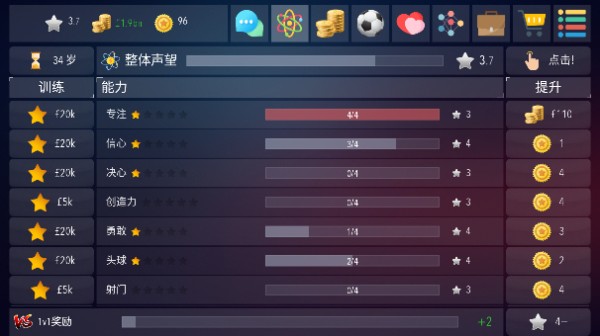 2. 通过参加俱乐部比赛、训练和转会谈判,逐步提升能力值与市场价值。