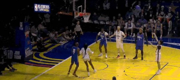 王鹤棣入场时模仿勒布朗-詹姆斯戴皇冠的动作。然而,在第二次入选名人赛中,王鹤棣似乎有些过于紧张,中距离投篮直接三不沾,并且错失了一个空篮机会,没有全力出手。