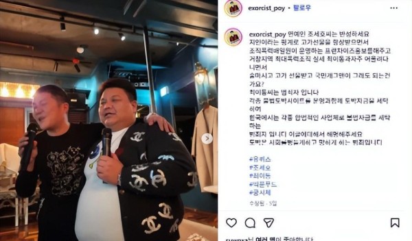 最近网上炸锅了。8月5号韩国男艺人曹世镐被曝跟黑社会组织的人走得很近,经纪公司赶紧发声明说全是假的,但网友更生气了。原来有人在网上晒出照片和聊天记录,说曹世镐和庆尚南道一个叫崔某的黑帮老大是朋友,还帮对方公司打广告拿好处。 爆料者是个专门搞犯罪新闻的人,他在社交平台放出几张照片,显示曹世镐和崔某一起吃饭,还在一家连锁店门口摆拍。这些店后来被查是崔某用来洗钱的。崔某那边还涉嫌运营赌博网站,把非法资金转成合法收入。 经纪公司在声明里说了两件事:一是否认曹世镐收过礼物,二是威胁要起诉爆料的人。但大家根本不买账,评论区炸了锅。有人质问:“什么熟人啊,普通人会跟黑帮喝酒吃饭吗?”还有人喊话刘在石工作室赶紧跟他划清界限,别被连坐。