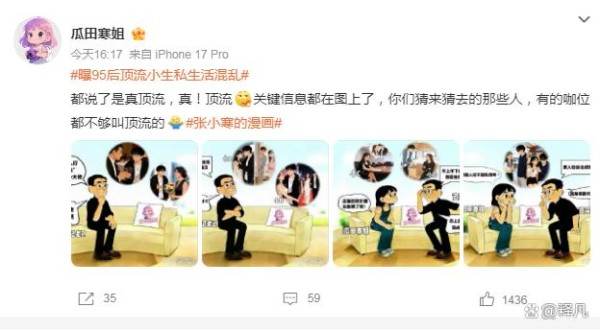 1月14日,娱乐博主"瓜田寒姐"通过匿名漫画爆料某95后顶流男星私生活混乱,称他与"国民闺女"因戏生情并同居,引发热议!