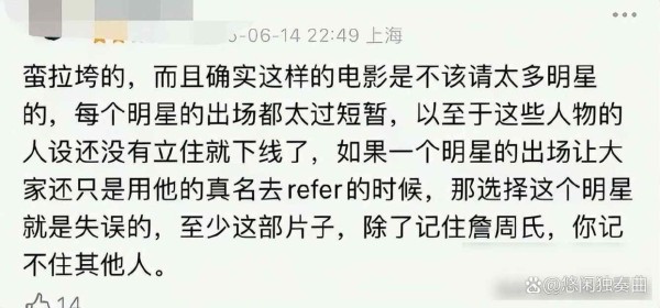 电影节结束后,网上还在讨论这部电影的问题。有人说明星太多影响叙事,有人说粉丝吵架毁了路人缘。导演现在估计压力很大,但观众已经用差评表达了态度。