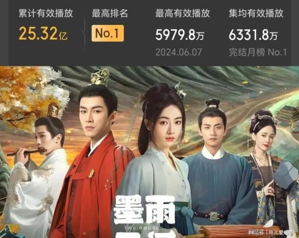 2024年4月2日起优酷独播40集古装爱情剧,以集均播放量7481.2万、累计有效播放量29.92亿挺进前五。1999年出生的张婧仪,因此剧提名釜山国际电影节“亚洲内容大赏”最佳新人女演员,一跃成为内娱新起之秀。