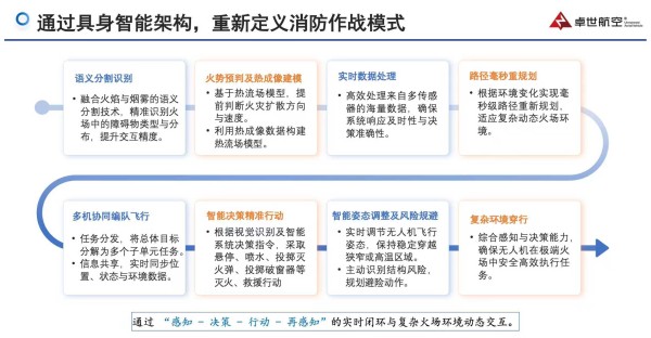 3)AI赋能-具身智能实景应用:以AI智能决策系统为核心竞争力,实现火源自动识别与自主灭火,彻底改变传统消防无人机依赖飞手手动操作的落后模式,解决了行业操作复杂、效率低下的核心痛点;