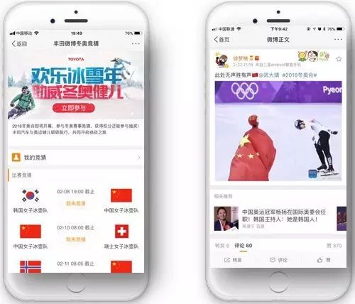 第二弹制造网友参与,在话题热度持续发酵时,丰田汽车在微博上开放冬奥会赛事竞猜通道,为平昌赛场征战的冬奥健儿助威,点燃网友的参与热情,自发进行二次分享传播,形成扩散效应。