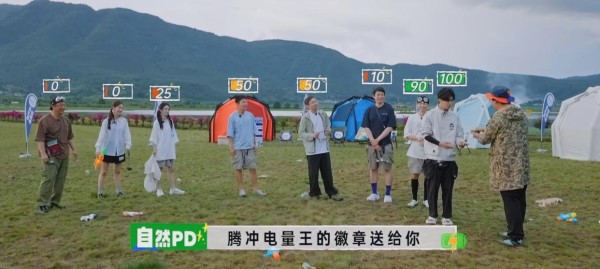 节目整体就是一个做游戏,得电量,电量换道具的流程。主打的走近大自然,应该是每期去不同的野外自然风景区,可以看作一个户外慢综。