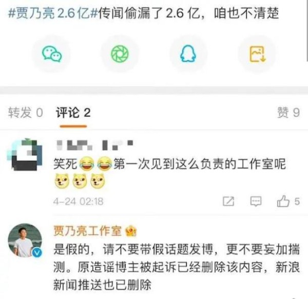 原标题:《贾乃亮偷税漏税2.6亿?工作室这样回应……》