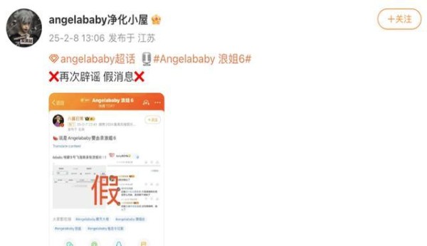 Angelababy方否认参加《浪姐6》录制:再次辟谣假消息