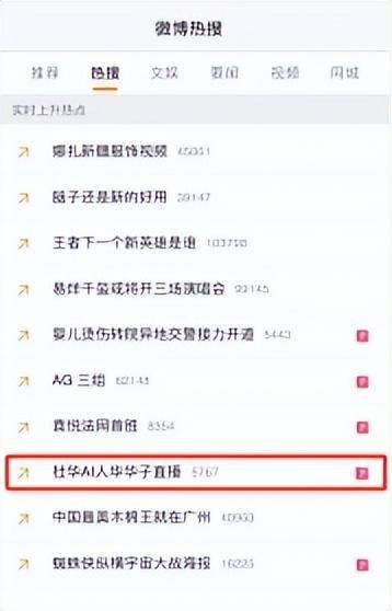 想象一下,一个真人与数字人共同主持的直播,这一幕简直令人目瞪口呆。消息迅速传遍网络,"杜华AI人华华子直播"立即成为了微博热搜话题,引发了广泛的热议。