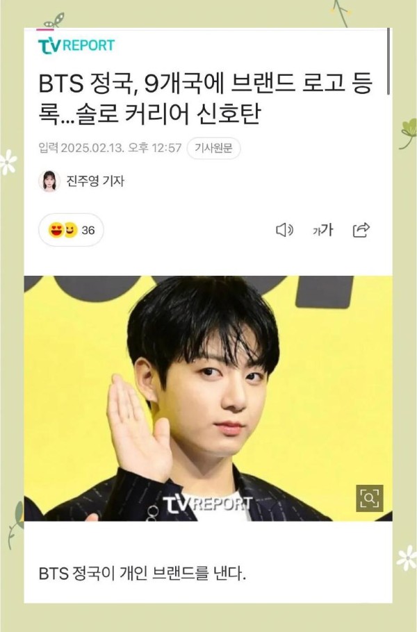 田柾国的品牌logo在九国成功注册的消息一经公布,便激起了粉丝们的热烈反响。粉丝们为田柾国从单纯的歌手身份向独立品牌迈进的成长历程而欢呼,同时对他未来的个人事业发展寄予了殷殷期待。