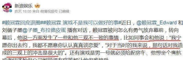 一年多后,赖冠霖在一次采访中终于讲出了自己退圈的真相,揭开了娱乐圈的某些隐藏秘密,也让吴京多年前的一句话再次引发了大家的关注。他直言,自己选择退出娱乐圈的最大原因,是圈内许多事情与自己的价值观相冲突。几句话里,他揭示了三条令人震惊的潜规则。首先,他提到圈内那种扭曲的爱情观。经纪人曾直接告诉他:我宁可你出去和女孩子约会,也不想让你去认真谈恋爱。这番话彻底打乱了赖冠霖的观念。对他而言,真心去对待感情本应该是理所当然的事,但在娱乐圈,明星认真谈恋爱反而成了不对的事,令他深感困惑。