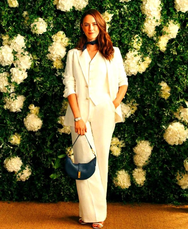 钟小姐身着的拉夫劳伦开衫与米色长裙,展现了简约而不失时尚的魅力。这种穿搭在日常生活中复刻性极高,既适合休闲场合,又不失优雅气质。 在温网,经典服饰如浅色西装和碎花裙装受到了许多名人的青睐,搭配呈现出了优雅的休闲风和商务风。