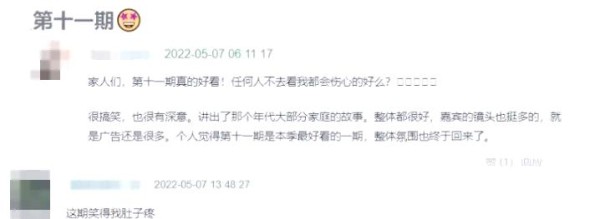 好在,节目组在推出第11期时,终于亮出了他们的王牌,再度掀起怀旧复古风潮。本期节目中,邀请了杨迪和贾乃亮担任飞行嘉宾,这一举措成功地扭转了节目的口碑。在第11期节目通过引入怀旧复古元素及邀请得力嘉宾实现口碑回升,观众评价有所改善。