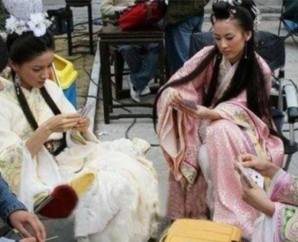 不过在片场的时候很多人,有时候自己的戏份拍完了或者还没轮到,休息一下的时候,明星们也会做一些自己的事情或者娱乐一下,缓解压力。