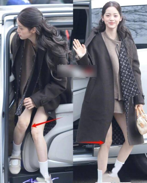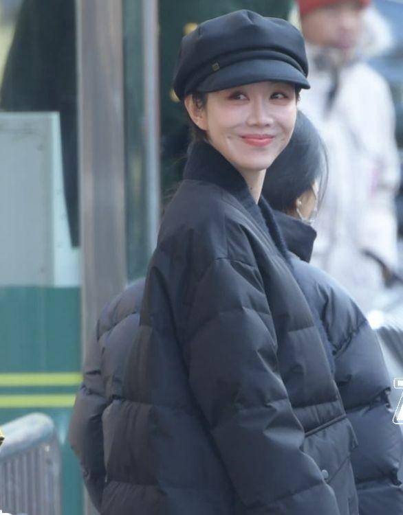 一边是把 “敬业” 写在脸上的实力派。刘涛刚下车就亮了,红唇配大波浪,一身穿搭精致到挑不出错,看到镜头直接笑着打招呼,还顺手比了个心,全程带妆状态拉满,这股子专业劲儿没得说。秦海璐更有意思,戴着首饰穿着讲究,耳朵上挂着耳机,听说是在赶小说进度,即便如此,面对镜头也没半点敷衍。