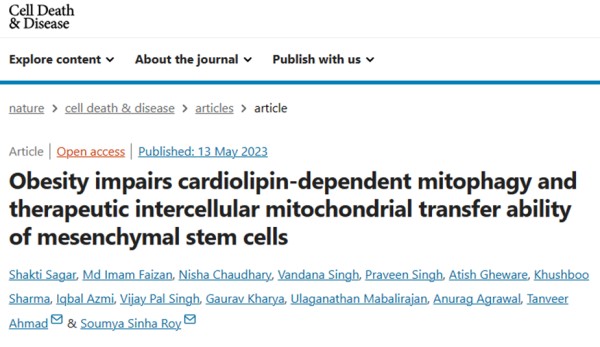 2023年5月,Cell Death Dis发表了题为Obesity impairs cardiolipin-dependent mitophagy and therapeutic intercellular mitochondrial transfer ability of mesenchymal stem cells的研究论文。该研究通过对肥胖受试者(代谢紊乱人群)的细胞间线粒体供体能力和间充质干细胞 (MSC)的治疗效果是否受到损害,以及研究线粒体靶向治疗是否可以逆转的过程中,发现PQQ调节可恢复线粒体健康,以减轻线粒体自噬受损。