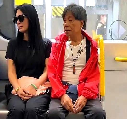 77岁梁小龙坐地铁被偶遇,满头白发老态尽显,娇妻宋骧罕见出镜