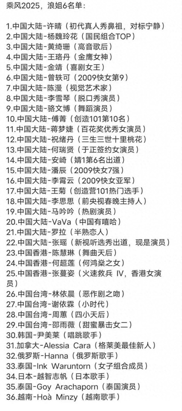 先说说这份名单吧,最近网上流传的《浪姐6》嘉宾名单可真是让人眼花缭乱,名单上的人数是越来越多,而且看起来还挺有模有样的。