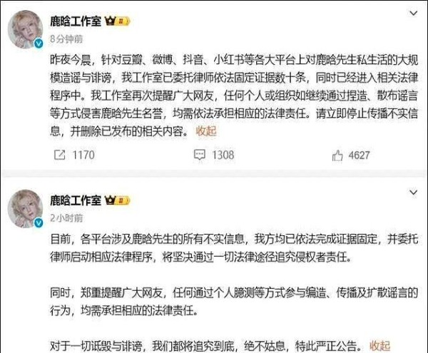 女网红自称与鹿晗林更新等多名男艺人存私密关系,多方发声辟谣并称将追责,律师分析