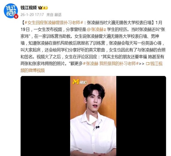 女子发视频讲述曾是张凌赫学员的经历,透露他曾当补习老师