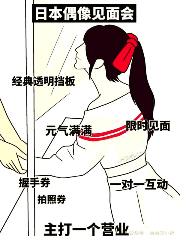 而 日本偶像见面会则以营业为核心理念。元气满满的小偶像们与粉丝进行限时相见,粉丝需通过持拍照券或握手券入场。经典的透明薄膜将粉丝与偶像隔开,营造出一种特别的氛围,使每位到场粉丝都能感受到独特而珍贵的体验。