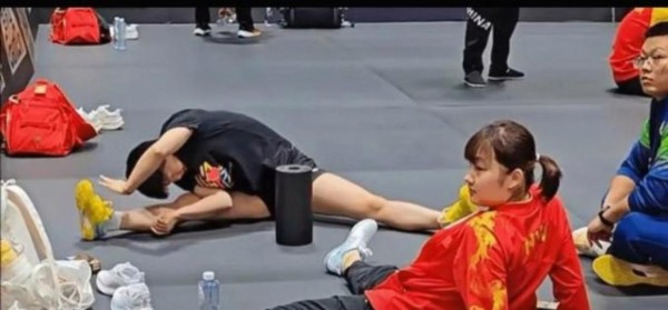 令人担心的事情还是发生了,莎莎随队训练展开拉伸和基本功热身,画面中能清晰看到她全程参与训练过程