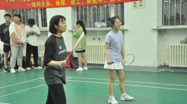 头哥看到莎莎累了,知道削球耗费体力,即使一天训练四次,还是忍不住走过去,让莎莎能喘口气恢复状态