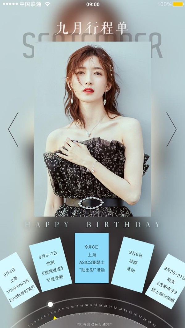 李沁工作室的行程图做得相当雅致,“九月西风兴,月冷霜华凝”的诗句也是相当有中国风的感觉。这个月6号李沁将飞往首尔参加迈宝瑞秋冬大秀,13号在上海出席品牌酒会,17号在北京出席品牌活动,23号李沁也将飞到米兰参加时装周。