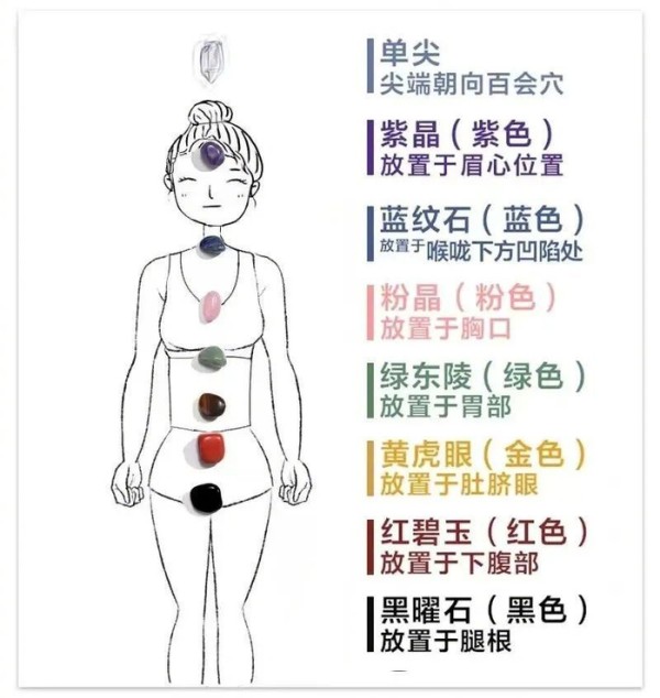 圈子里还有更加高阶的玩法,比如根据人的五行选择佩戴不同的水晶。小晴则相信“脉轮说”,脉轮是一种源于印度瑜伽运动的理论,认为人的身体由七个轮穴组成,它们是能量的进出口,而关于水晶的玄学主张,特定的水晶对应着身体里的不同脉络。