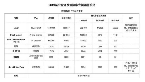 如果横向对比全网(多平台)发售的数字专辑销量,能看到网易云音乐的几个明显特点: