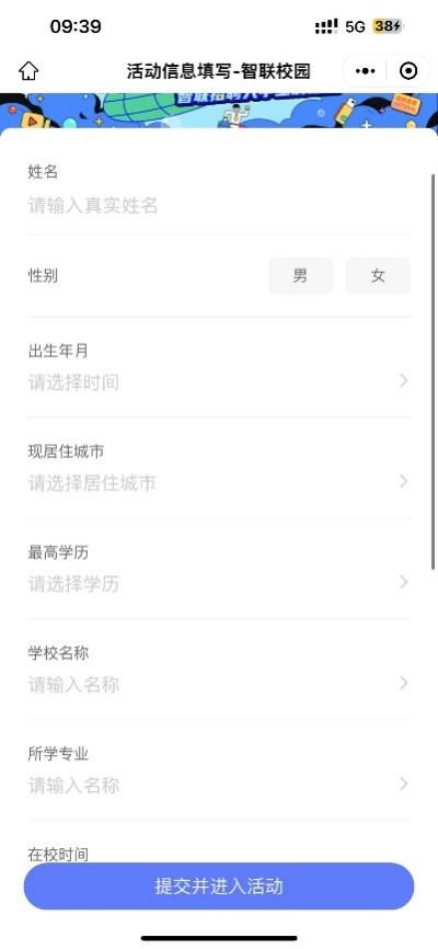 扫码,同意隐私保护协议后点击参与活动,登录后验证手机,填写信息(样例如下,邮箱可不填,姓名、学校、专业名称请准确填写)。