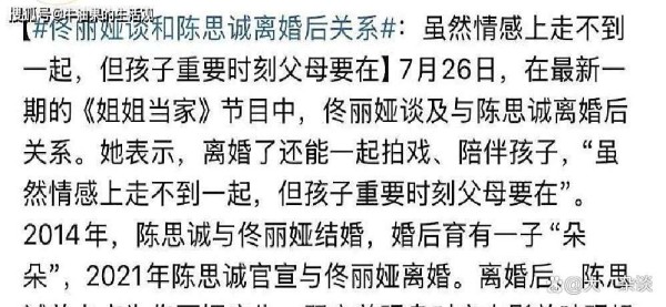 要说这两年哪个词在网络上能激起老百姓的“八卦DNA”,那非“离婚”莫属。可小编今儿想聊的还不止“离婚”,而是娱乐圈那帮女明星别具一格的“离婚不散伙”,不仅工作还在一块混,带娃还同框,就差打印份“前夫合作协议书”挂家门口给人参观了。佟丽娅和陈思诚、董璇和高云翔……这点名点姓举例的新闻素材,咋就像写给编剧备课用的剧本,处处都是反转,看得人脑瓜崩儿疼。