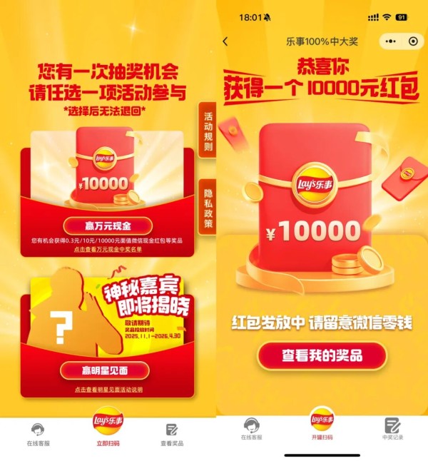 通过“现金+明星”的双重激励,乐事把常见的促销活动转化为更具策略性和价值感的长效体验,从而更全面地满足消费者期待。