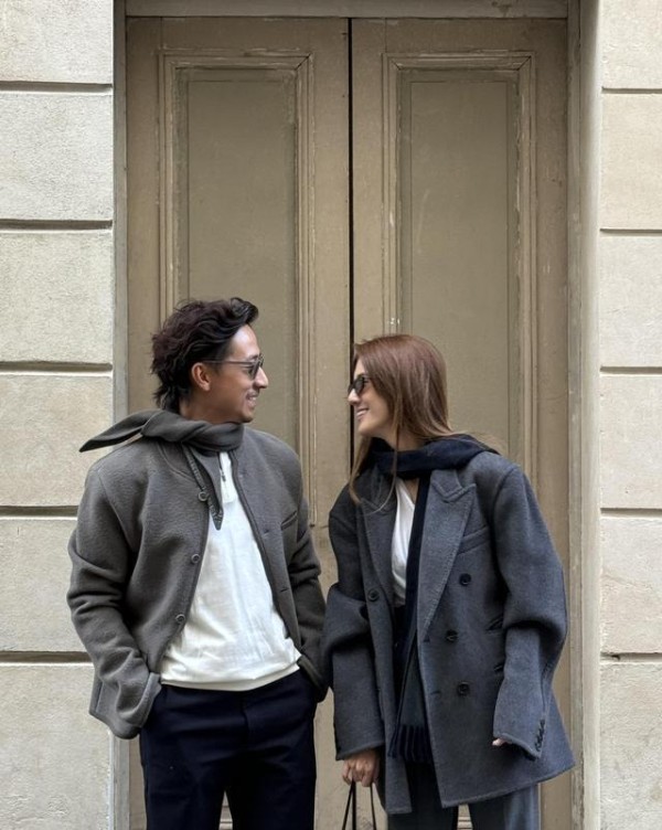 照片里显示两人穿着风格相近的“情侣装”——低调、不夸张,但很有默契。