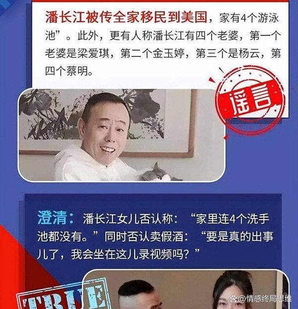 更让人唏嘘的是,谣言一直追着这家人跑。有人扒到潘阳在三亚酒店拍的照片,硬说“潘长江家有4个游泳池,还全家移民美国”。潘长江无奈上线辟谣:我们家连4个洗手池都没有,更别提游泳池;中国是我的根,移民这事儿,想都别想。顺手还把所谓“卖假酒”的锅甩远——真有那种事,我还能坐这儿录视频?这已经不是第一次,2023年他就发过视频,挂上“不信谣不传谣,谣言止于智者”。