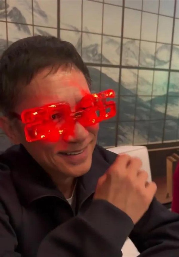 最绝的是影帝梁朝伟。刚杀青一部片酬几千万的大制作,此刻却顶着一个写着“6”的彩色发光面具,手舞足蹈,像个期末考完终于能疯玩的孩子。他在干嘛?逗老妈开心。那个在镜头前社恐、忧郁、眼神深邃的电眼男神,此刻只想躲在卡通面具后面,当一个让妈妈笑的老儿子。