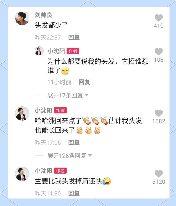 近日,小沈阳在个人平台发布了一段视频,其中他调侃自己掉粉速度之快,不禁让人思考:难道大家都没耐心吗?视频中的他,虽然皮肤状态尚佳,并无皱纹,但39岁的他,发量却显得有些不足,头发稀疏,头皮若隐若现,引得网友纷纷留言调侃:到底是掉头发快还是掉粉快?